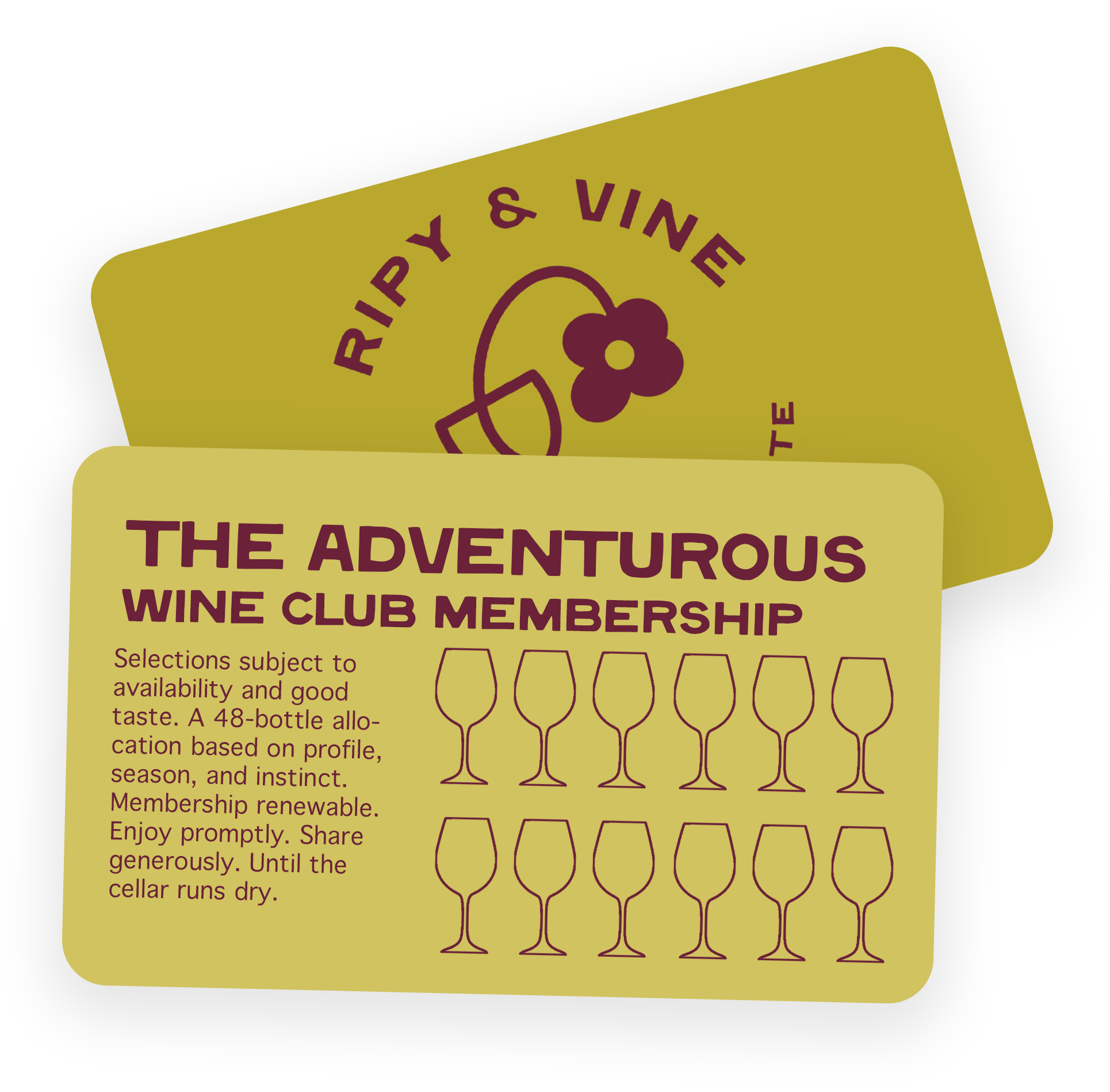 The Ripy & Vine Wine Club is a monthly wine subscription built around four bottles you’ll actually want to open. Each month, we curate a thoughtful selection based on balance, seasonality, and drinkability, with options for both classic tastes and more adventurous palates.